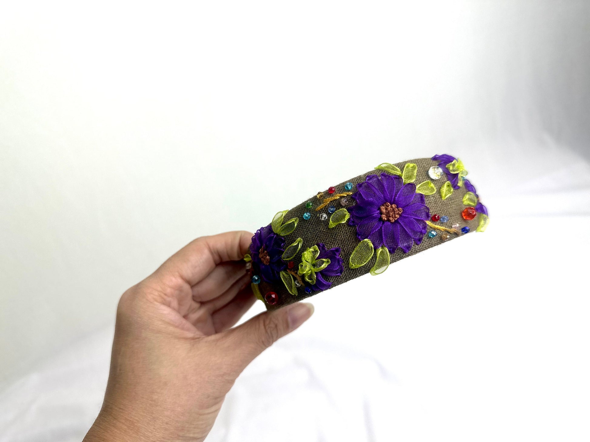 Handmade in our small workshop, Elevate your hairstyle with the enchanting beauty of our "Blossoming Blooms: Floral Ribbon Embroidery Hair Headband." Inspired by the delightful feeling of wearing a flower headband, this exquisite hair accessory showcases meticulously hand-embroidered roses, sunflowers, and daisies. Each delicate bloom is adorned with shimmering blink blink beads, infusing the design with an irresistible touch of glamour. Crafted from high-quality linen material, this headband offers both comfort and durability. The 4cm large size effortlessly adds a feminine and elegant touch to any hairstyle, making it perfect for a variety of occasions. Embrace the captivating allure of nature and express your unique style with this stunning handcrafted hair accessory. Elevate your look with the effortless beauty of floral ribbon embroidery.