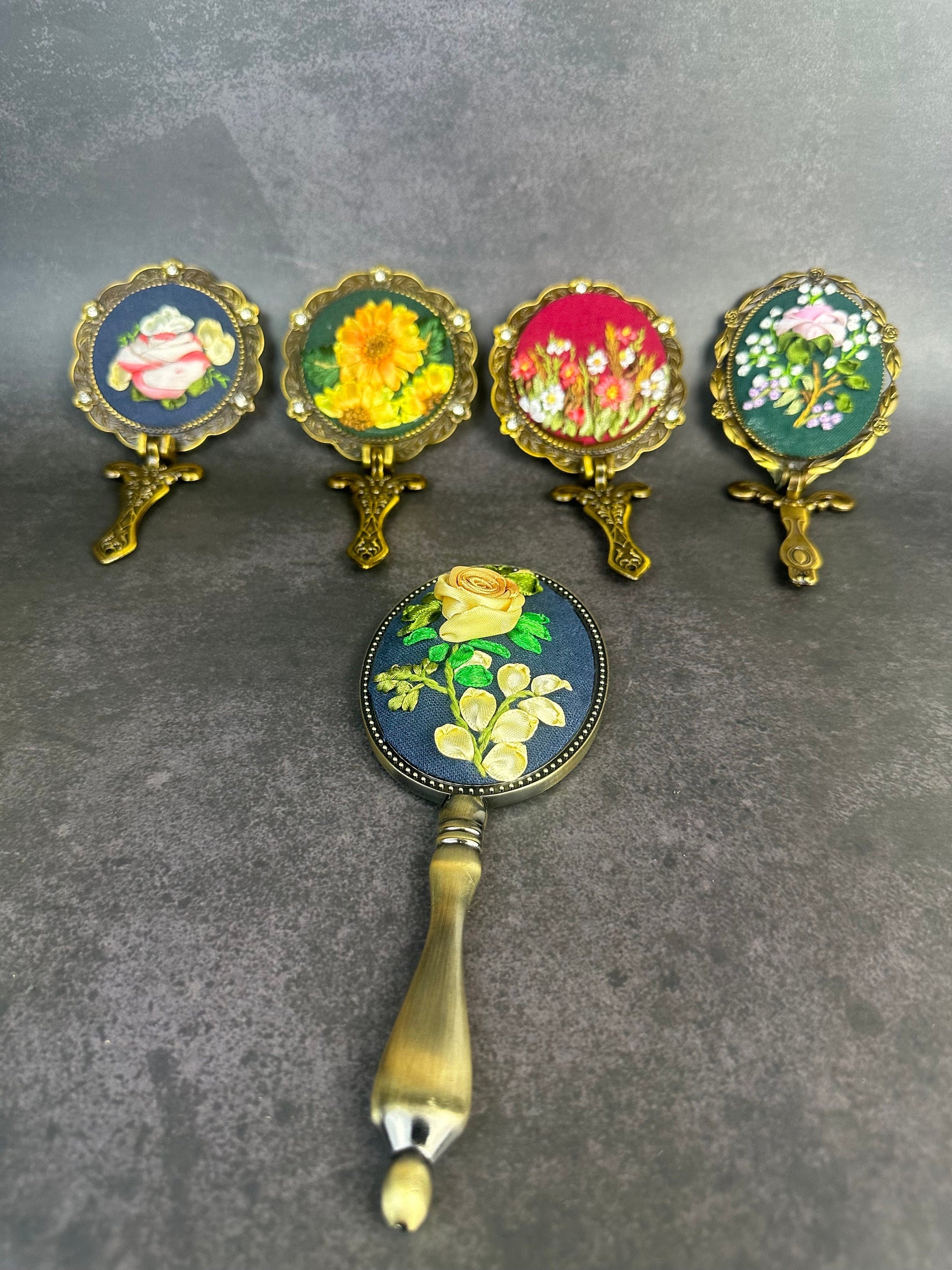 Personalized ribbon embroidery hand mirror |Floral embroidery hand mirror | Beauty accessories | Vintage mirror |Gift for her, Sunflowers